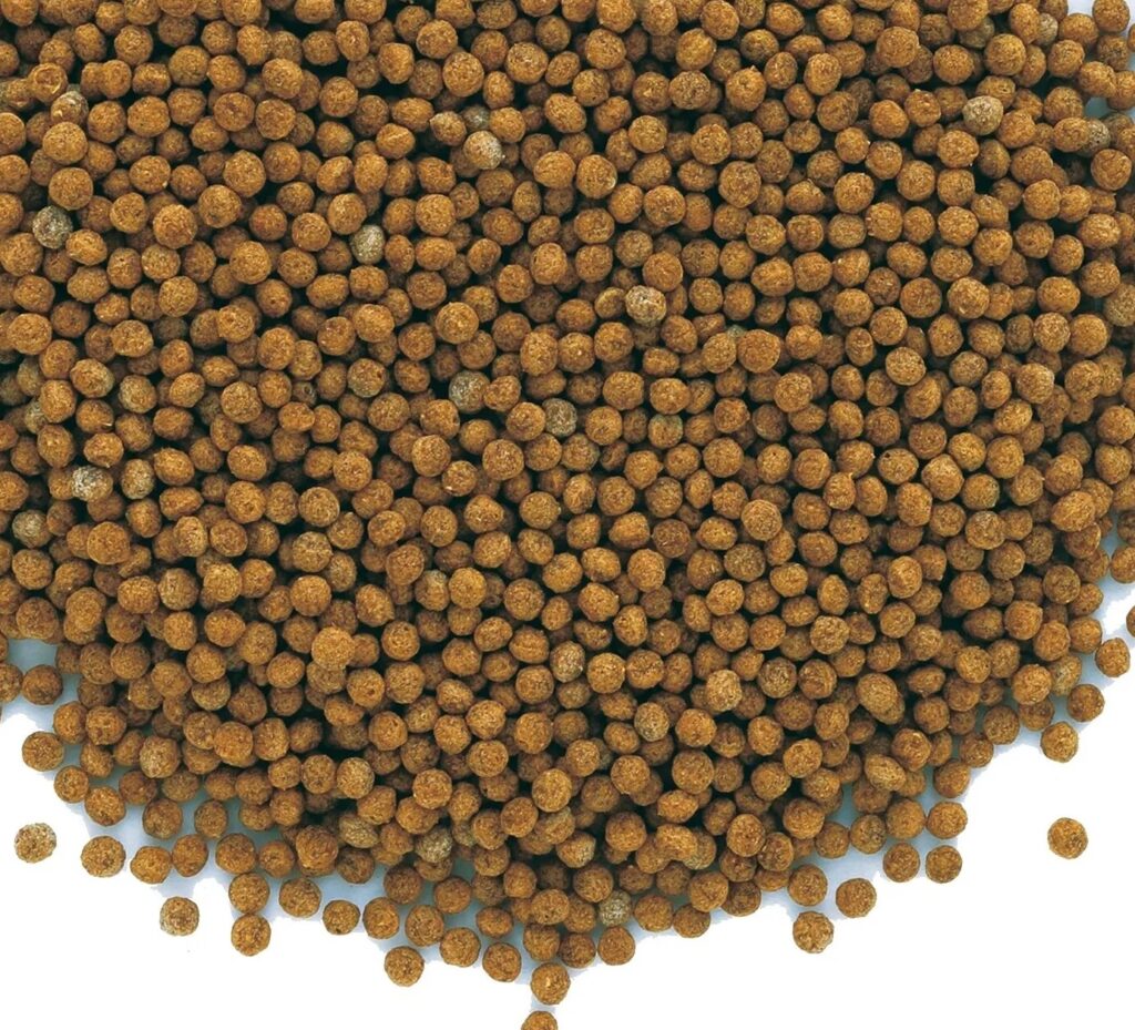 Это специализированное экструдированное сырье в виде плавающих палочек. Размер — 10-15 мм. Основные компоненты: зерновые, составные растительного белка, мука (рыбная, ракообразная, из беспозвоночных). Добавлены необходимые масла и жирные кислоты, витаминно-минеральный состав. Подходит для питания прудовых рыб, карпа КОИ. Стоимость -2093 руб.