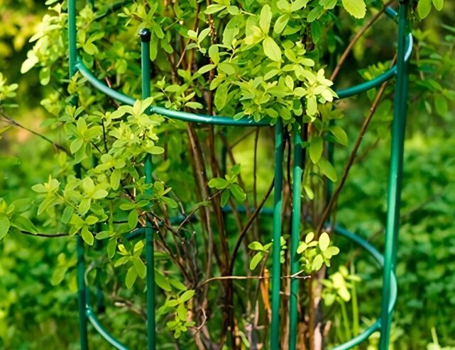 Металлические опоры для цветов и овощей, подходящие для поддержки пионов, помидор и огурцов. В комплекте – 5 штук. ПВХ покрытие защищает от ржавчины и механических повреждений. Для удобства подвязывания предлагается подвязка. Можно адаптировать под размеры растений. Использование этих изделий может увеличить урожай на 20 %, предотвращая гниение и способствуя образованию соцветий. Каждая дополнена защитным пластиковым колпачком, который предотвращает попадание воды и мусора внутрь. Размеры: 35×80 см. Цвет зеленый. Стоимость от 1101 руб.