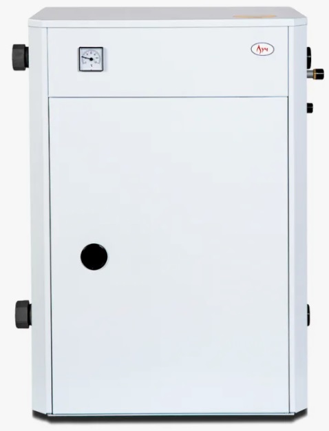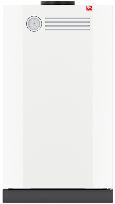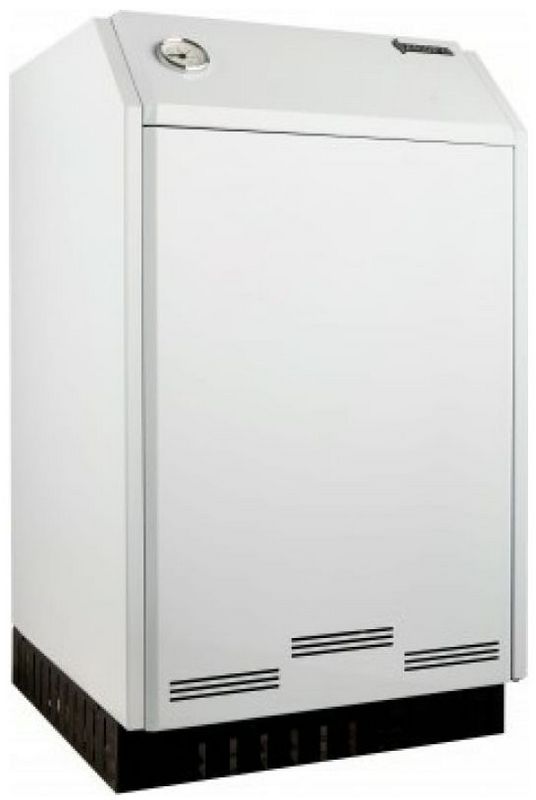 Стальная конструкция добавляет котлу прочности и универсальности, ведь он позволяет организовать автономное отопление. Надежный и экономичный, работающий на природном и сжиженном топливе агрегат выполнен из металла толщиной 2 мм., обладает надежным теплообменником с антикоррозионной обработкой. Съемная передняя панель упрощает процесс обслуживания. КПД достигает 90 %, а газовый расход не превышает 5,5 куб.м/ч. Стоимость: 100000 ₽.