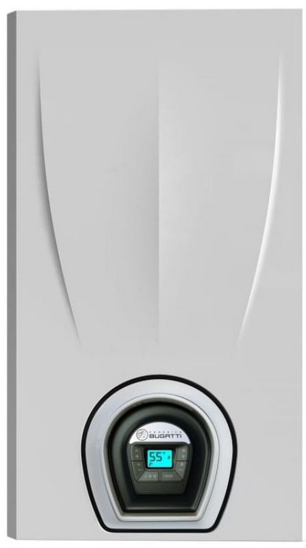 Стильный современный вариант, которым можно управлять дистанционно (при подключении к wi-fi). Предусмотрен электронный манометр и 2-х уровневая защита от избыточного давления теплоносителя. Есть защита от замерзания и заклинивания при простое. Минимальная тепловая мощность: 10 кВт. КПД: 92 %. Габариты: 38х63х24 см. Вес: 24 кг. Гарантия от производителя: 2 года. Цена: 35015 руб.