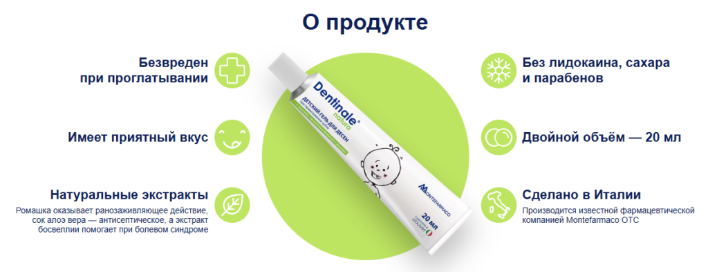 В качестве основного активного вещества в нем используется ромашковый экстракт. Препарат целиком натуральный, поэтому не провоцирует негативной реакции организма. Оно за короткий срок устраняет болезненность и успокаивает раздраженного ребенка.