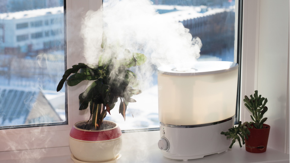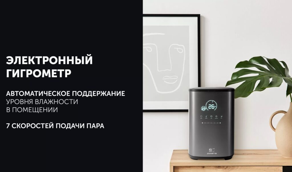 - Включить и настроить пароувлажнитель на режим непрерывной работы с выставлением максимальной мощности в дневное время, чтобы не замечать от него небольшого шума. В вечернее и ночное время устанавливать минимальный или средний уровень испарения.