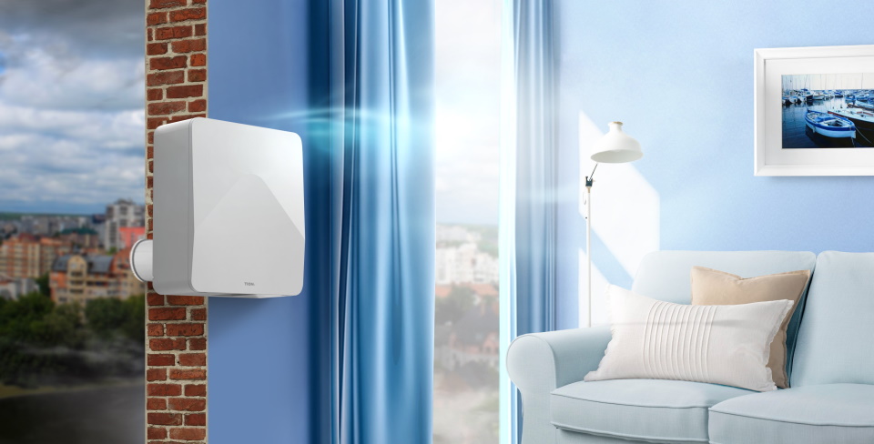 3. Настенный – лишнего пространства не занимает, часто забор воздуха производит с улицы.