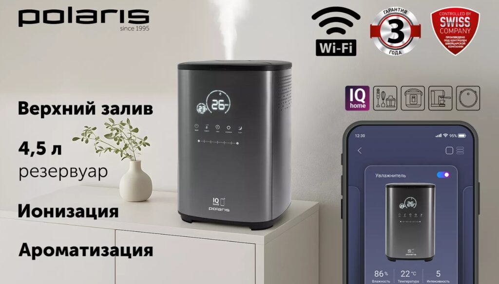 Одно из предложений Royal Clima — увлажнитель воздуха RUH-MR200, настоящий оазис для жилых помещений. Этот прибор призван насыщать воздух влагой, снижая риск респираторных заболеваний и аллергических реакций. Польза не ограничивается здоровьем: укрепление иммунитета, улучшение сна, омоложение кожи, снятие усталости, избавление от кашля и сухости в носу. В основе конструкции лежит вместительный 1,5-литровый резервуар, обеспечивающий длительное использование без необходимости частого пополнения. Прибор демонстрирует достойный уровень удобства в использовании, автоматически отключаясь, когда уровень воды достигает своего минимума, предотвращая возможные казусы. Безопасность еще больше повышается благодаря функции Child Protection, которая защищает от проникновения воды в электрические компоненты и автоматически отключается при извлечении резервуара для воды.