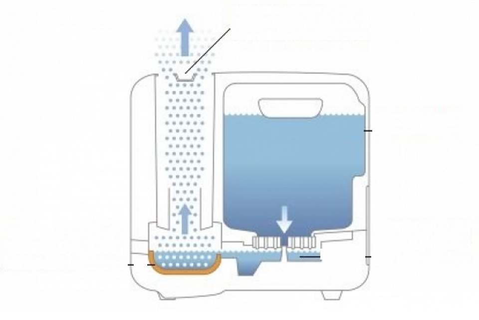 - использование только очищенной деминерализованной жидкости для предотвращения появления белого налёта на поверхностях из-за солей, находящихся в распыляемых частицах;