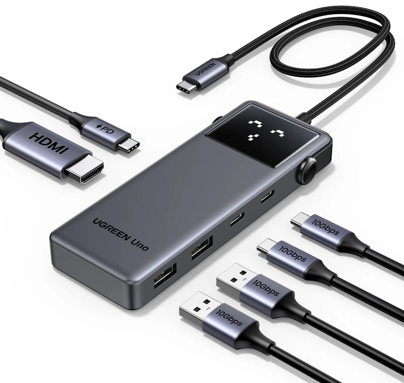 - Для офиса и дома. UGREEN Uno 100W + USB-C хаб 6-в-1 обеспечат полноценную рабочую станцию с возможностью зарядки всех устройств и подключения периферии.