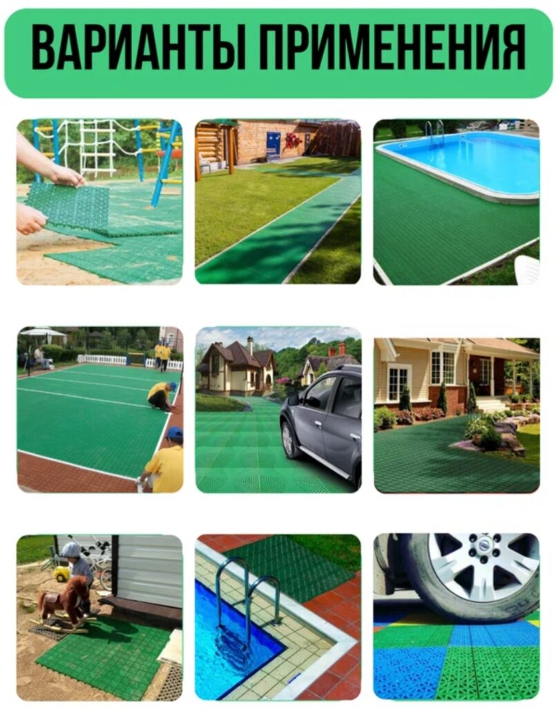 Представьте себе площадку, где играют дети, пространство рядом с вашим домом или уютную зону отдыха у бассейна. Во всех этих местах часто используют специальное покрытие — модульное пластиковое. Оно универсально и применяется там, где важна безопасность, удобство и красивый внешний вид. Им покрывают детские игровые комплексы, сады, бассейны, летние кафе, выставочные павильоны и даже полы в домах. Цена: 3889 руб.
