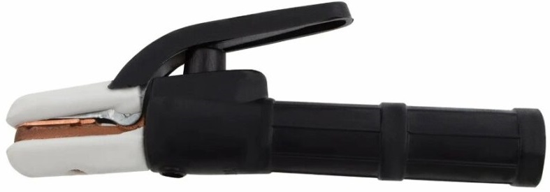 4. Прицеп (кабельное соединение). Место, где фиксатор соединяется с проводом, который идет от сварочного аппарата. Важно, чтобы это соединение было крепким и надежным, чтобы ток шел без перебоев. Иначе будет искрить, греться, в итоге можно и пожар устроить.