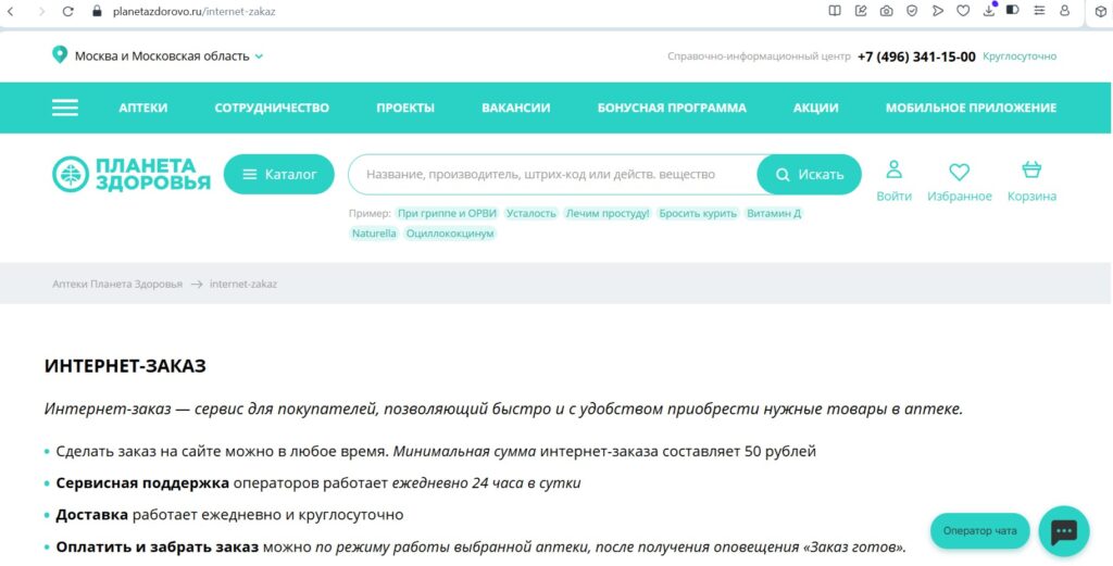 Сервис для покупки медицинских продуктов онлайн. Благодаря круглосуточной работе, компания обеспечивает доступ к лекарствам без необходимости посещения аптеки. Пользователи могут создать заявку на сайте, выбрав препарат посредством поиска по каталогу или вводя название вручную. Оформляя покупку, клиент получает информацию о наличии медикаментов и ценах, минимальные суммы покупок начинаются от 50 рублей. Операторская служба оказывает поддержку независимо от времени суток. Можно воспользоваться несколькими способами доставки или самовывоза. Оперативная действует в ряде регионов, важно учитывать ограничения, касающиеся рецептов, определенных категорий продукции и специфики хранения отдельных лекарств. Самостоятельно забрать можно непосредственно в одной из аптек сети после предварительного уведомления о готовности. Оплата возможна наличными при получении, и с использованием банковских карт, включая оплату сертификатом «Планета Здоровья». Есть возможность индивидуального заказа, позволяющая получать медикаменты тогда, когда они отсутствуют в аптечной сети.