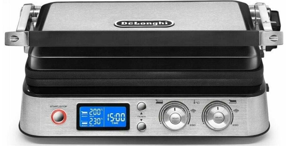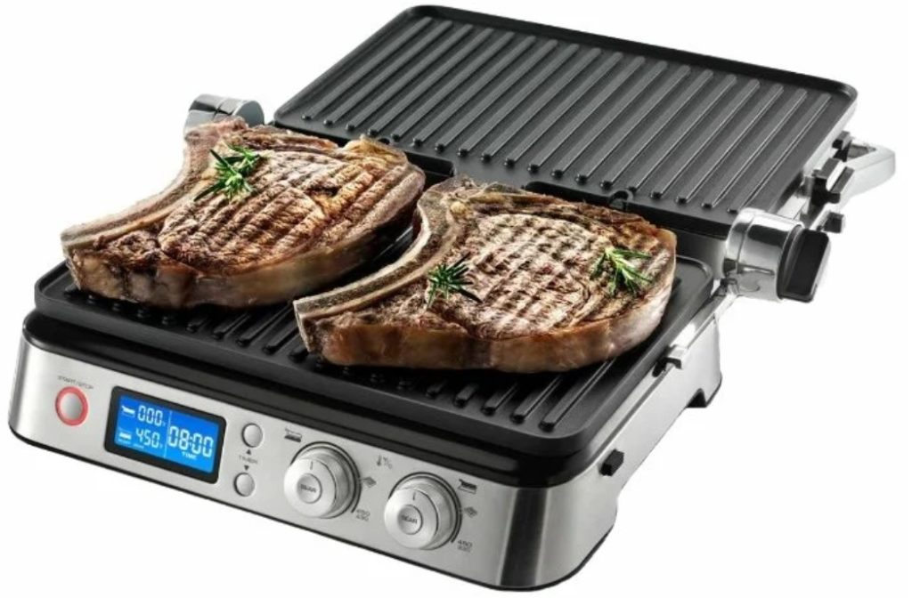 Защита от перегрева и автоматическое отключение обеспечивают безопасность на кухне. Стальной корпус и металлическая рабочая поверхность делают этот гриль долговечным. Черный цвет и электронное управление придают ему современный и стильный вид. При весе 10,6 кг он довольно тяжелый и может оказаться не самым портативным вариантом. Размеры гриля могут оказаться слишком большими для кухонь с ограниченным пространством.
