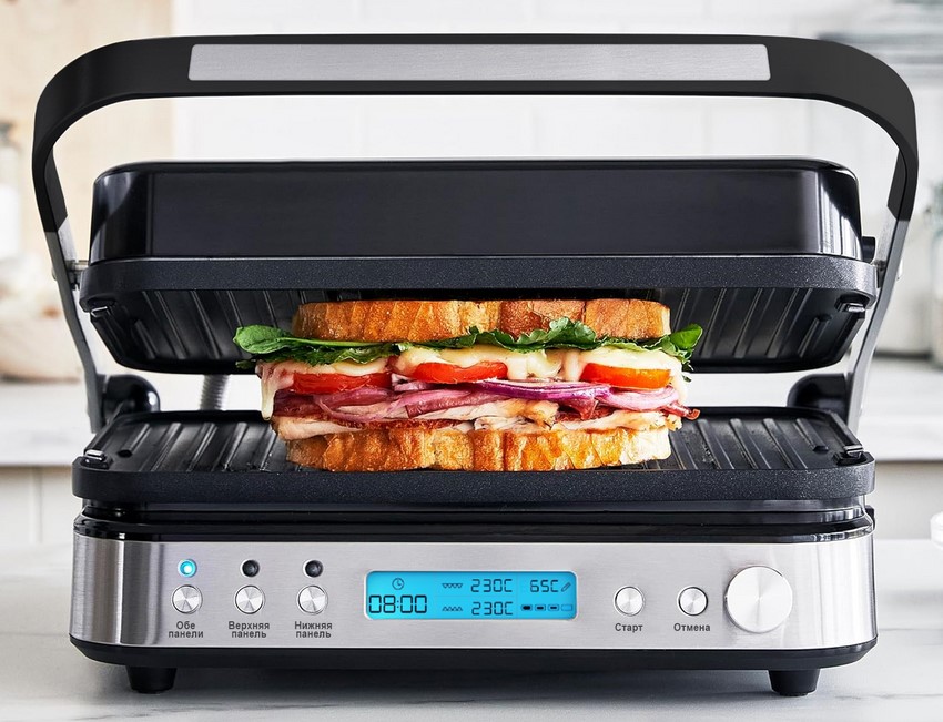 Благодаря 6 режимам приготовления, включая мясо, птицу, рыбу, сосиски, гамбургеры и режим размораживания, этот гриль способен приготовить широкий спектр продуктов. Хотите ли вы приготовить стейк или хрустящие сэндвичи — он справится с этой задачей. Вы можете полностью контролировать температуру приготовления: она варьируется от 110 до 275 градусов Цельсия. Такая точность позволяет готовить различные блюда до совершенства, не задумываясь об этом.