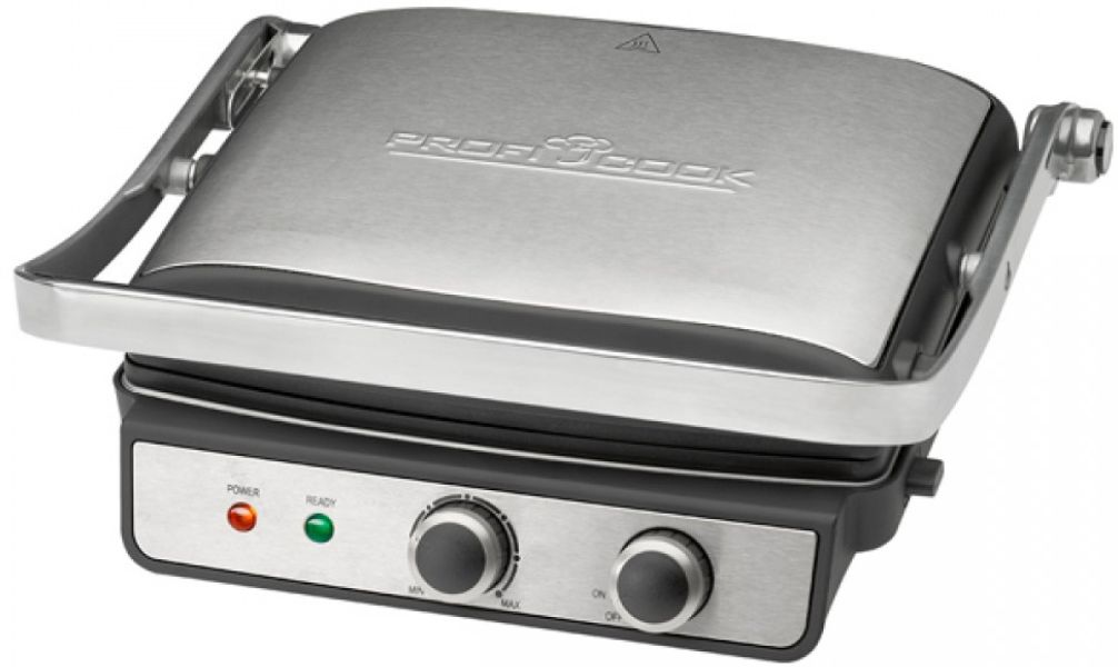 Гриль мощностью 2000 Вт со стильным дизайном, который впишется в современный интерьер кухни. Гриль имеет рифленую поверхность и обладает антипригарным покрытием. Предусмотрен отсек для жира, регулятор температуры и датчики нагрева. Гриль также оснащен функцией автоотключения в случае перегревания. Габариты рабочей поверхности составляют 29,7х23,5 см. Гриль также можно использовать как открытый, но у него есть один недостаток — пластины в нем не снимаются.