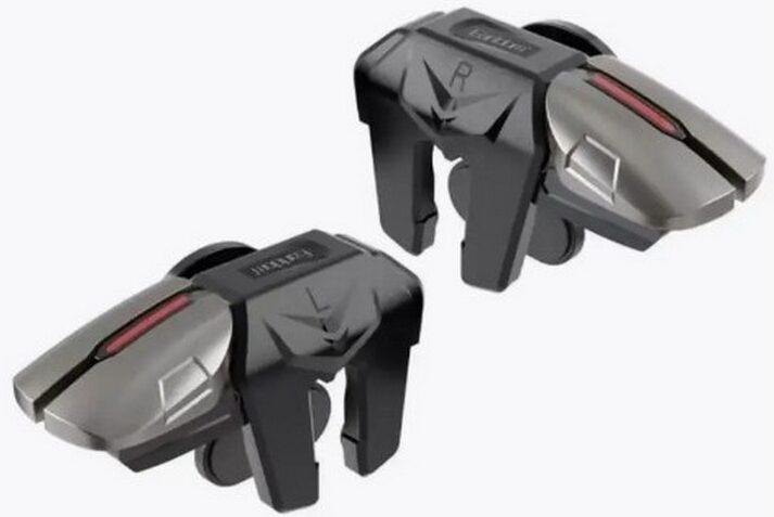 Сочетание черного, темно-серого цветов и оттенка серый металлик в материалах корпуса этих электроимпульсных контроллеров смотрится стильно и дорого. Аккумулятор емкостью 35 мАч полностью заряжается за 40 минут, его хватает на 4 часа беспрерывной игры в PUBG, Fortnite, Standoff2 и ряд других мобильных шутеров. Имеется 3 скорости стрельбы: от 15 до 50 выстрелов. Совместимы с Windows; iOS, Android, Nintendo Switch. Надежно прилегают к смартфону и не царапают его экран благодаря наличию специальных силиконовых подушечек. Отличаются молниеносным откликом, которому не мешает даже защитное стекло. Еще одно достоинство – негромкий щелчок. В комплект входит кабель для зарядки, напальчники и кейс для хранения. Производство – Китай. Средняя цена – 1058 руб.