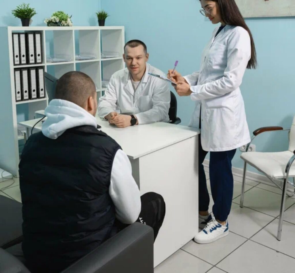 - Диагностика и консультация специалиста. Первоначально пациент проходит обследование, направленное на выявление степени тяжести заболевания, сопутствующих проблем со здоровьем и возможных рисков. После диагностики проводится индивидуальная консультация врача-нарколога, психолога или психиатра, где пациенту разъясняют характер болезни, возможные методы лечения и перспективы выздоровления.