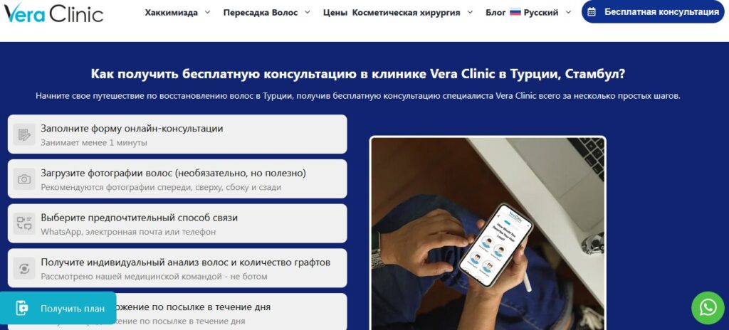 Бесплатную консультацию можно запросить на сайте, заполнив форму, перезвонить через мессенджер WhatsApp. Требуется фотография кожи головы, анализ состояния отправляется через 24 часа с индивидуальными рекомендациями, подходящим пакетом услуг, стоимостью услуг.