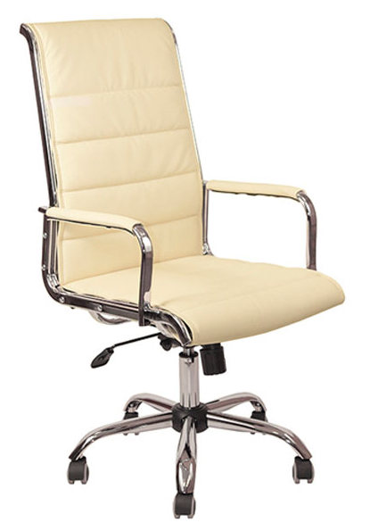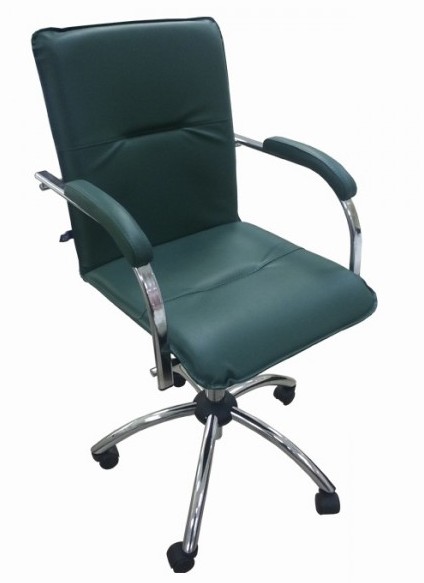 Лаконичный и удобный вариант офисного стула. Продается в любых цветовых вариантах. В офисы ставят варианты из искусственной кожи, они более прочные и износостойкие. Кожзам можно самостоятельно мыть, на нем не остается пятен и разводов. Крестовину также можно подобрать под индивидуальный заказ – пластик или хром. Выдерживает вес до 130 кг.
