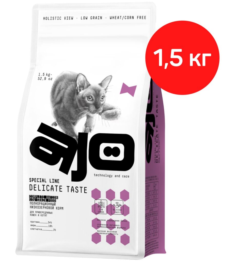 корм для привередливых кошек AJO Delicat Taste Достоинства: