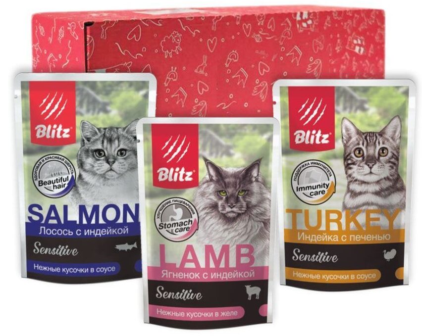 корм для привередливых кошек Blitz Sensitive Достоинства: