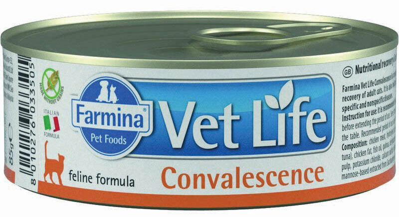 Рекомендован для животных с эзокринной недостаточностью поджелудки, при нарушении всасывания, переваривания пищи. В период восстановления в послеоперационный период. За счет хорошей усвояемости, высокой питательной ценности, животное получает все необходимое без нагрузки на ЖКТ. В составе филе курицы, сардина, гидролат рыбного белка, пивные дрожжи и дрожжевой экстракт, куриная, свиная, печень ягненка. А также семена киноа, зола, хелатная форма железа, витамины, минералы. Из-за однородной паштетной консистенции подходит для пожилых кошек. И, если судить по отзывам многие питомцы переходят на Farmina Вет Лайф без каких-то проблем. Цена – от 200 рублей за банку.