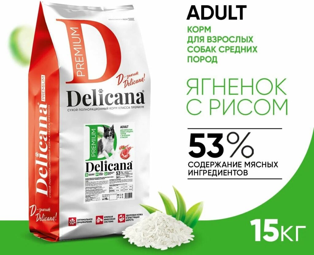 корм с гидролизатом белка для собак Delicana Ягненок с рисом 15 кг Достоинства: