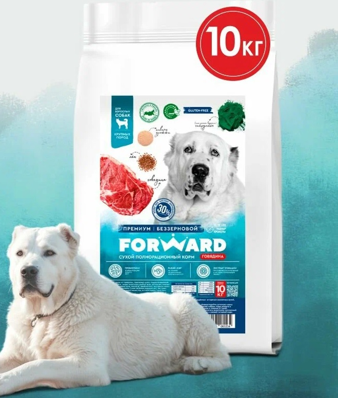 корм с гидролизатом белка для собак Forward Premium Беззерновой для служебных и сторожевых собак 10 кг (говядина) Достоинства: