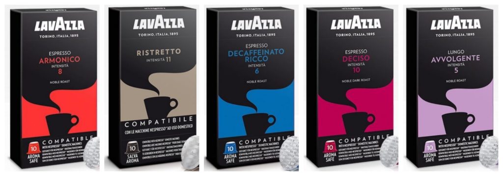 Lavazza выпускают продукт в зернах, молотый, растворимый, а также в капсулах.