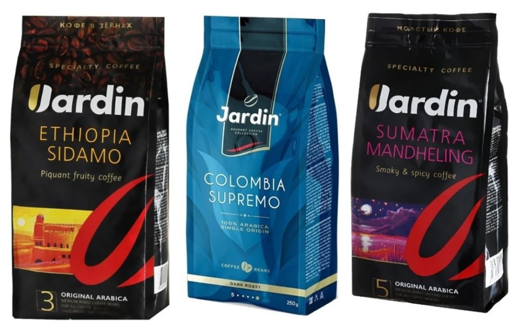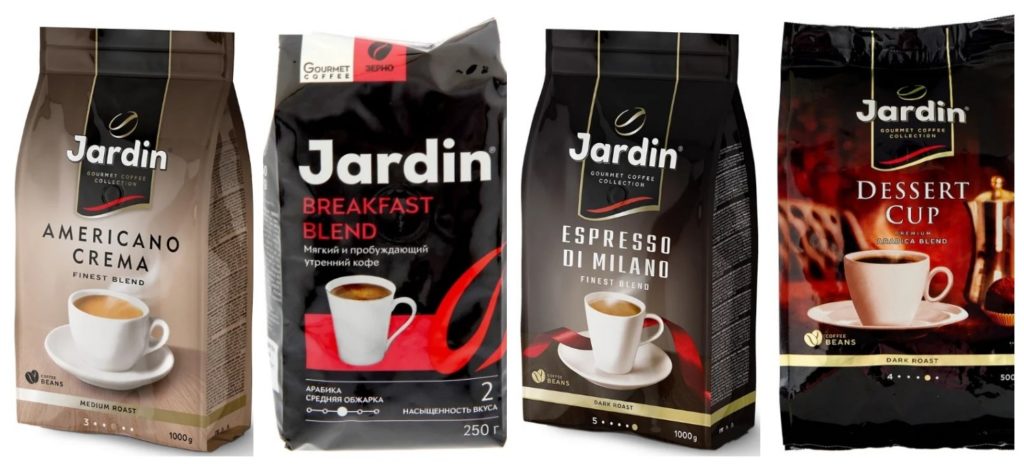 Jardin – очень молодая в сравнении с предыдущими компания. Она появилась в 2007 г. как совместный проект швейцарской и российской компании. Уникальность производства заключается в применении особой технологии двойной обжарки, а также в специальной системе упаковки. В основе бренда – сорта без добавления робусты. Они представлены в зерновом, молотом, растворимом виде, а также в капсулах для кофемашин.