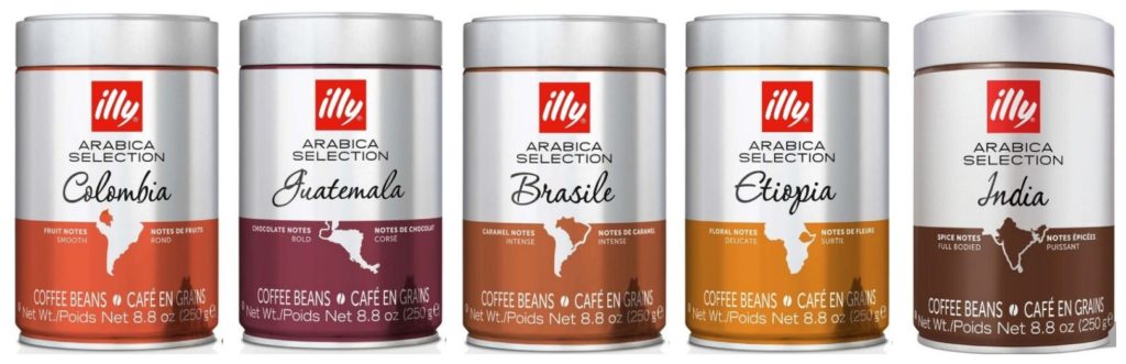 • illy Arabica Selection Brasile (Бразилия) – самый интенсивный и яркий с преобладающими нотами карамели;