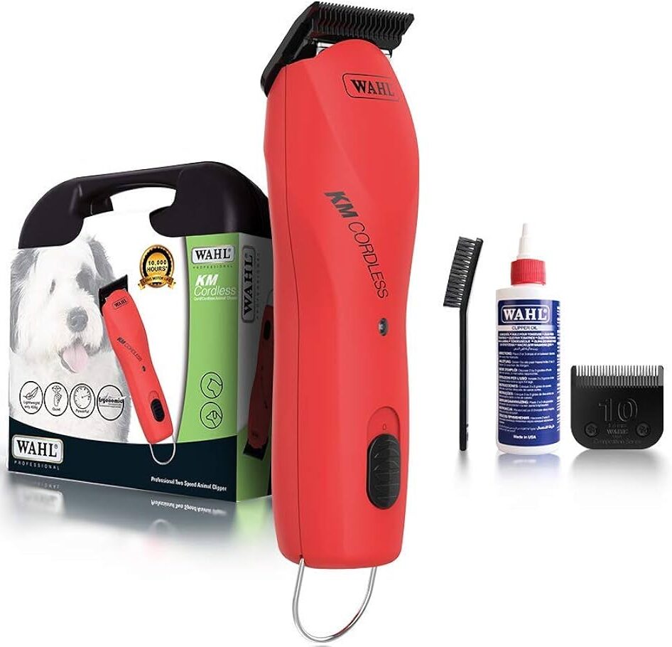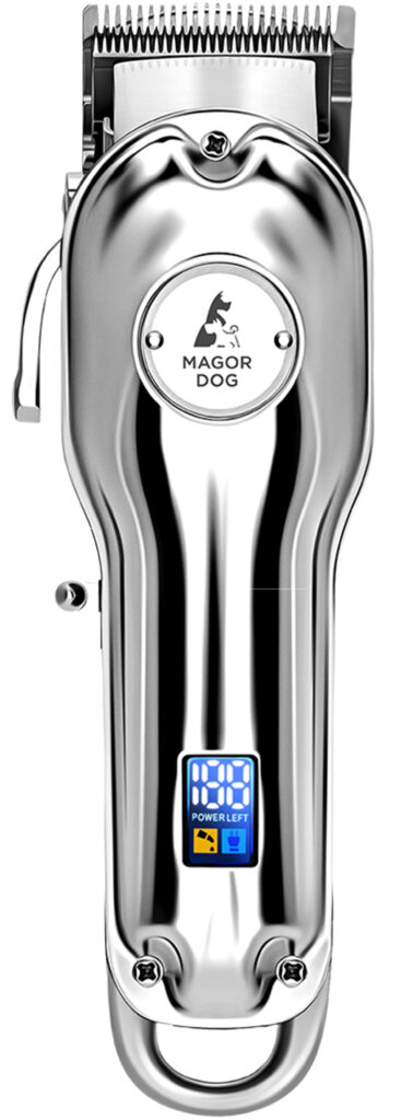 Мощная, тихая, с керамотитановыми лезвиями и роторным бесщеточным мотором. Может работать от сети или как беспроводное устройство. Заряда АКБ на средних оборотах хватит примерно на 4 часа.  В комплект поставки входят насадки – можно регулировать высоту среза от минимальных 3 мм. до максимальных 12 мм. Отзывы хорошие. Пользователи пишут, что стрижка пуделей стала намного проще, быстрее. Триммер не шумит, не вибрирует, ножи не закусывают, не дергают волоски. Поэтому эту машинку можно смело рекомендовать для стрижки пугливых или животных, которых еще никогда не стригли.