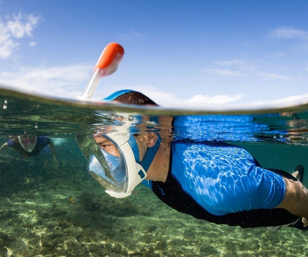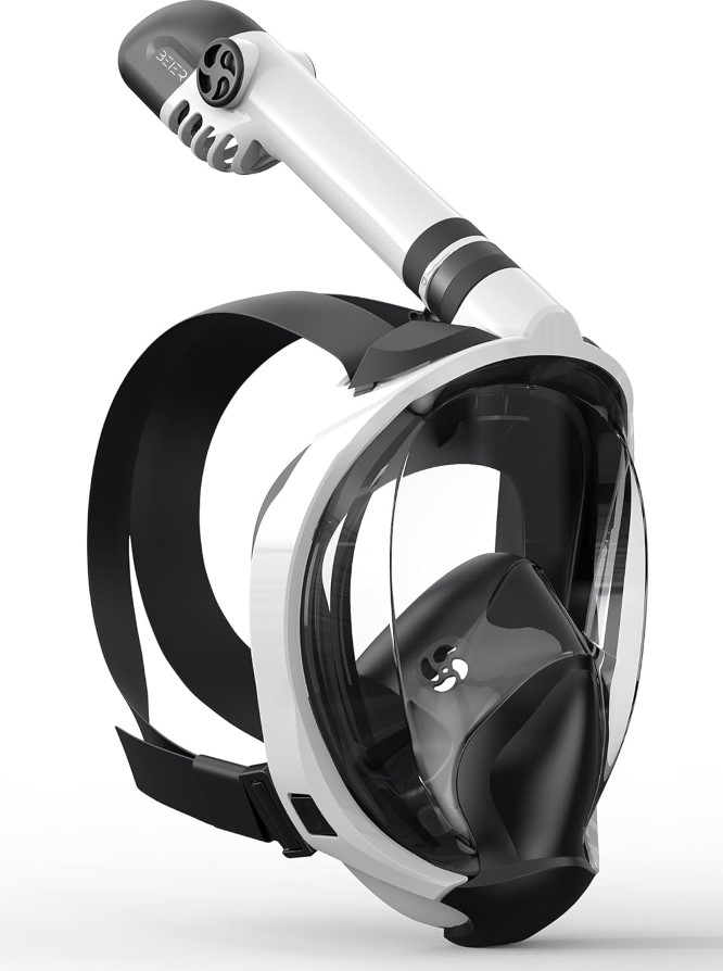 Аксессуар для плавания на все лицо, при помощи которого можно не только исследовать подводный мир. Но также удобно и естественно дышать через нос и рот. Панорамный вид снаряжения составляет сто восемьдесят градусов, поэтому подводная прогулка в нем станет незабываемой. Маска имеет верхний механизм DRY-TOP, благодаря которому вода не сможет попасть внутрь. В клапане механизма этого полноразмерного снаряжения присутствует поплавок, который перекрывает воздушный канал. Поэтому если вода перекрывает верхний конец трубки, ни капли не попадает в маску. Средняя цена: от 1500 рублей.