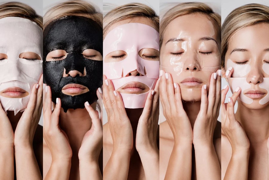 Пользуются популярностью тканевые, глиняные и кремовые маски. Тканевые могут быть пропитаны различными экстрактами, уменьшающими видимые пигментные пятна и выравнивающими тон. Нередко в составе встречается пантенол, ниацинамид и другие компоненты, уменьшающие воспаление и оздоравливающе влияющие на кожу. В глиняных основным действующим веществом является каолин, гассул, монтмориллонит, также нередко добавляют чёрный уголь, способствующий выведению токсинов. Наилучший сияющий эффект наблюдается от розовой глины. Кремовые маски щедро обогащают витаминами и растительными экстрактами, улучшающими цвет лица, сужающими поры и делающими кожу более здоровой. Помимо визуального улучшения, маски обладают расслабляющим и успокаивающим эффектом, поэтому благотворно воздействуют на весь организм.