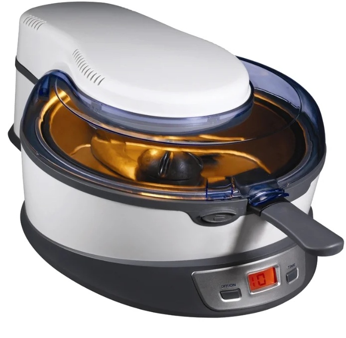 Особенности: уникальная безопасная технология циркуляции воздуха «Rapid Air Circulate System», позволяющая быстро и вкусно приготовить блюдо с достижением натурального эффекта готовки пищи на углях или в печи. Ингредиенты равномерно обжариваются со всех сторон, образовывается аппетитная корочка. Если извлечь во время готовки чашу, то таймер приостанавливает работу, по возвращению её на прежнее место – возобновляет процесс.