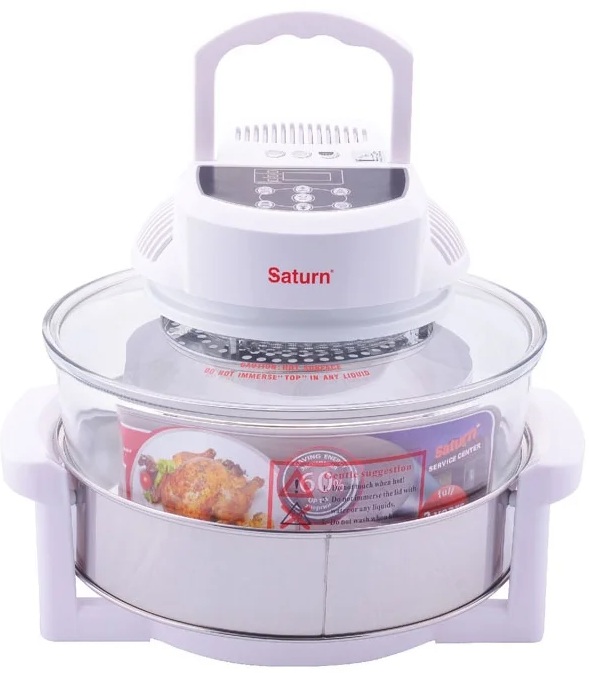 Аэрогриль оснащен цветным сенсорным LED-дисплеем, позволяющим выбрать нужную программу или установить собственные настройки. Большое смотровое окно на корпусе позволят наблюдать за готовкой. Есть таймер который можно установить на 12 часов, 3 режима работы для приготовления различных блюд. Объем чаши: 6,5 л., дно с антипригарным покрытием.