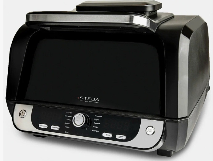 Модель от известного бренда с технологией Steak PRO и встроенным термощупом обеспечивает точный контроль за степенью прожарки. Есть удобная подсветка камеры, сенсорное управление и большой информационный дисплей. Чаша съемная объемом 6,5 л. Предусмотрен таймер до 60 минут, звуковой сигнал и индикатор необходимости перемешивания. Также встроена защита от включения при открытой крышке и функция автоматического отключения.