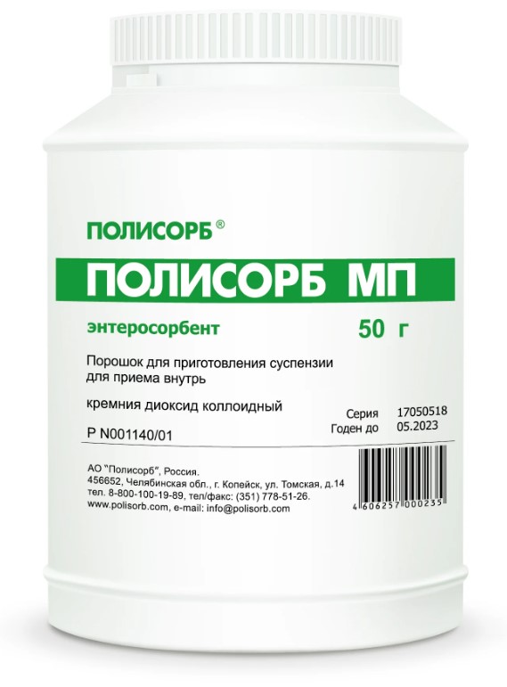 Энтеросорбент. Действующее вещество – коллоидный диоксид кремния. Назначают при диарее, интоксикации взрослых и детей, аллергических, дерматологических проявлениях. Выпускается в виде порошка для приготовления суспензии, во флаконах и пакетиках. Необходимое количество порошка зависит от массы тела. Производитель – Полисорб МП, Россия. Стоимость – от 165 руб. (флакон 12 г) до 377 руб. (банка 50 г).