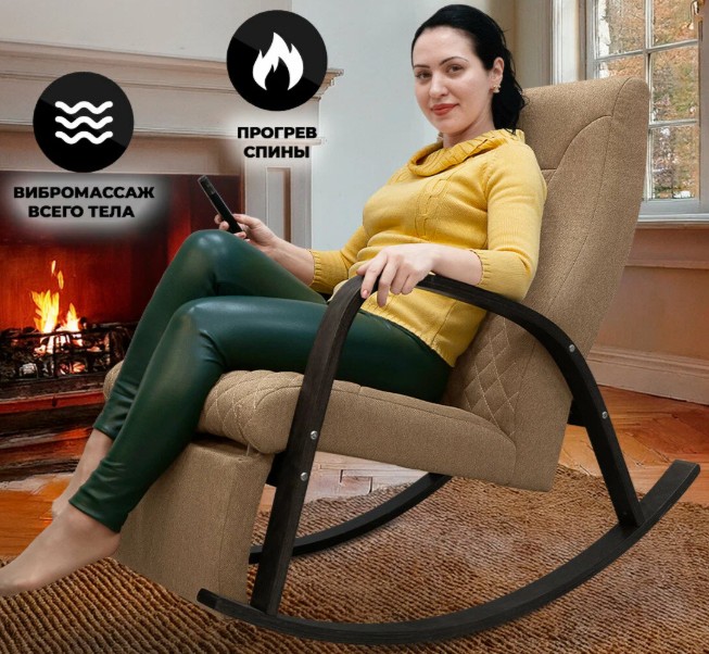 Массажное кресло-качалка сочетает плавные покачивания и технологию мануальной терапии. В устройстве реализованы 3 вида массажирования: вибрационного, постукивающего и расслабляющего, которые охватывают зоны бедра, спина и ягодицы. Дополняется функциями вибрации и прогрева, питание от сети, покачивания помогают снять стресс и расслабиться перед сном. Вибромассаж расслабляет мышцы и улучшает кровообращение, процесс укачивания позволяет дыханию стать глубже, наполняя кровь кислородом. Прогрев поясницы повышает эффективность, снимая напряжение и боли в спине. Укачивание перед сном в сочетании с массажем способствует засыпанию, улучшает качество сна и снимает усталость. Раскачивание нормализует сердечный ритм и кровообращение, тренировка вестибулярного аппарата облегчает переноску поездок и перелетов. Приблизительная цена от 20 464  руб.