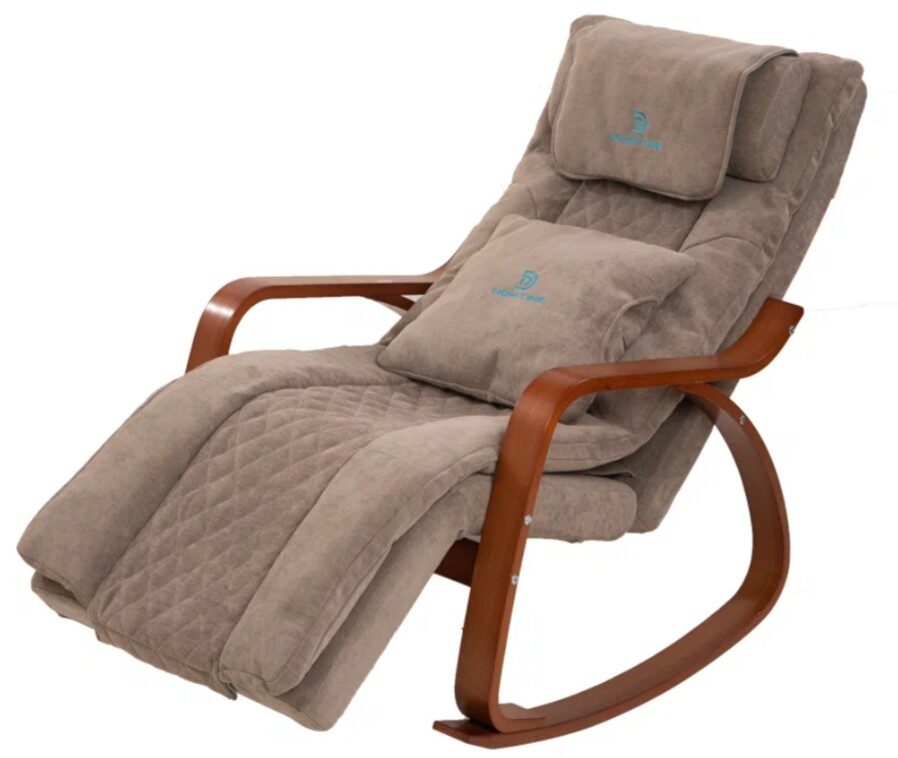 Электрическая, классическая качалка и современные технологии. Конструкции сочетает функции традиционного кресла-качалки и массажного оборудования для релаксации и восстановления энергии. Оснащено 2-я видами — постукивающим воздействием и разминающим Шиатсу, который направлен на снятие напряжения в мышцах, улучшение кровообращения и снижение стресса. Можно выбрать область массажирования: верхнюю часть спины, нижнюю или проработку всей поверхности. Интенсивность регулируется 3-я уровнями. Наличие прогревающей подушки в области шеи регулируется под рост, увеличивает терапевтический эффект, улучшает качество разминания. Предусмотрена функция вибромассажера для ягодичных областей, предназначенная для улучшения циркуляции крови, против целлюлита, для поддержания функционирования органов малого таза. Предусмотрены подлокотники из натуральной древесины. Каркасом из букового и березового массива, способного выдерживать нагрузку до 180 кг. Автоматическая система контроля для настройки ритма и силы воздействия. 5 позиций регулировки положения ножной опоры. Стоимость от 25 973 руб.