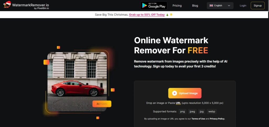 Позволяет точно находить и удалять водяные знаки без видимых следов. Поддерживает популярные форматы, включая JPG, JPEG, PNG и WEBP с максимальным разрешением 2400 x 2400 пикселей.