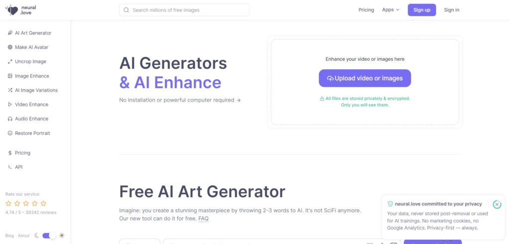 Neural Love — это искусственный интеллект, предназначенный для увеличения и улучшения цветных и черно-белых фотографий, видео и аудио файлов. Он обладает понятным англоязычным интерфейсом и предоставляет ряд функций, среди которых: увеличение до 4-х раз без потери деталей, повышение четкости, улучшение деталей лица на портретах, преобразование горизонтальных фотографий в вертикальные для социальных сетей и многое другое. Кроме того, Neural Love может дорисовать фон с помощью ИИ, раскрашивать черно-белые фотографии и создавать уникальный аватар на основе десятков селфи. Бесплатная версия программы позволяет обработать до пяти фотографий, в то время как минимальная стоимость платной подписки составляет 30 долларов в месяц.