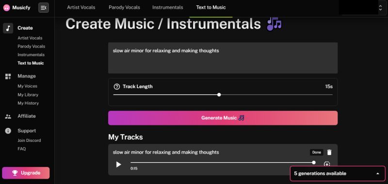 Платформа предлагает размещать созданные треки на стрим-сайтах и зарабатывать на просмотрах, однако для этого случая необходимо приобретать дополнительный пакет услуг.