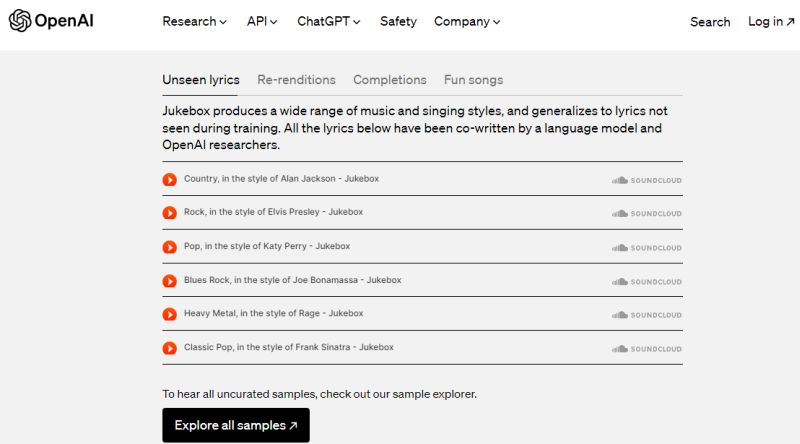 Нейротическая сеть разработана командой Open AI, обучение было пройдено более чем на 1,2 миллионах треков. Как и конкурентные приложения, JukeBox умеет генерировать музыку различных стилей и жанров, научена добавлять вокальные партитуры в готовый текст.