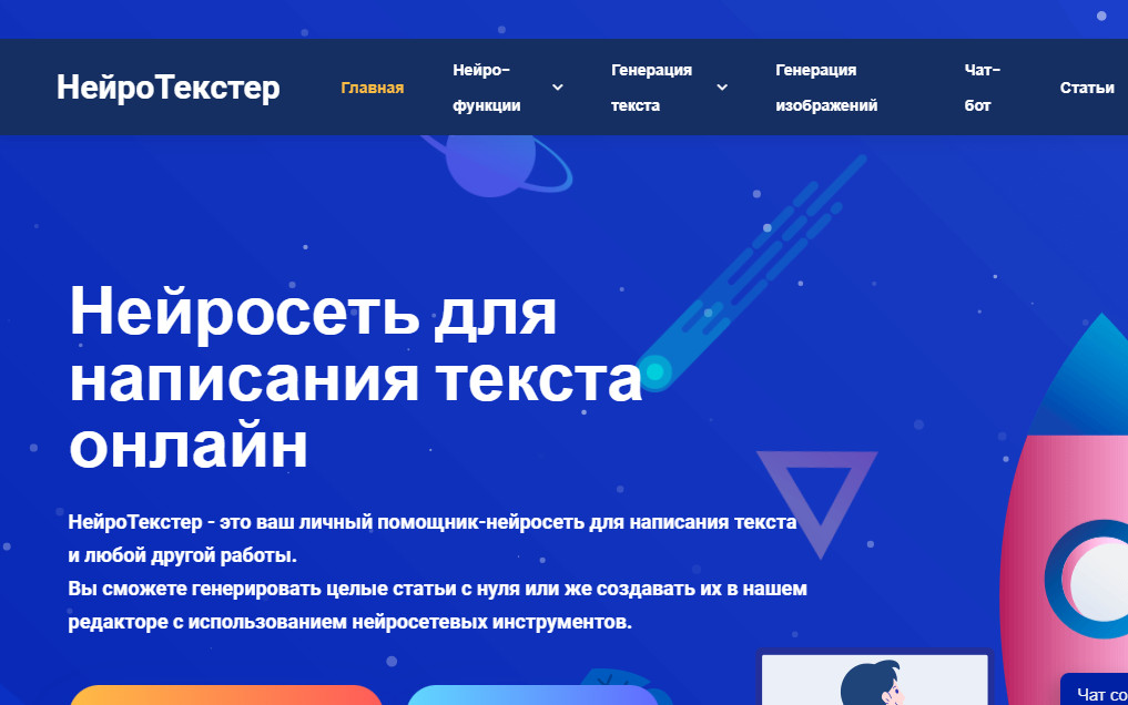 Вообще, эта сеть создана для генерации текстового контента для бизнеса – соцсетей, сайтов. Она может создавать продающие описания или креативную рекламу, генерировать изображения. Но НейроТекстер будет полезен и студентам.
