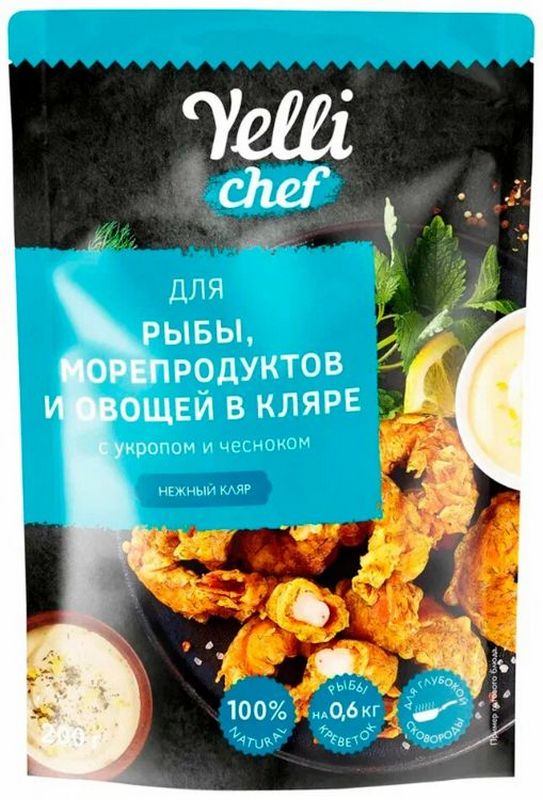Нежный и ароматный кляр, раскрывающий вкусовые качества рыбного филе, креветок и овощей. Имеет оптимальный состав из трав и специй, которые придают изысканный аромат. Создает тонкую и плотную хрустящую поверхность, подходит для множества кулинарных рецептов наподобие ресторанных. Можно готовить в обычной сковороде, на гриле или во фритюрнице. Стоимость: 70 ₽ за 200 г.