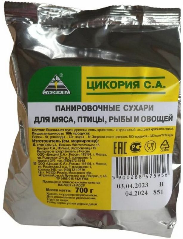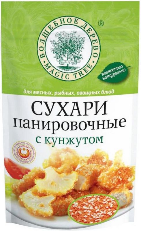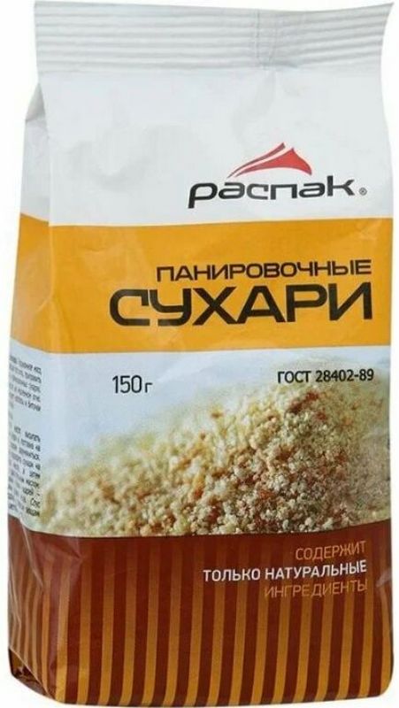 Основным сырьем для этой панировки является свежий хлеб, который придает блюдам равномерную хрустящую поверхность. Это делает пищу сочной и полезной, будь то птица или рыба. Стоимость: 370 ₽ за 500 г.