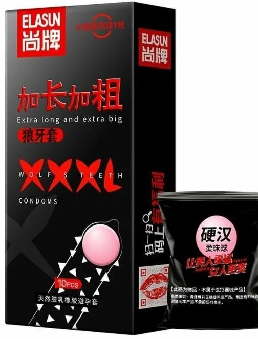 Ультратонкие увеличивающие презервативы XXXL специально разработаны для увеличения размера пениса во время полового акта. Изготовлены из высококачественного латекса, имеют дополнительное пространство в области головки, обеспечивают комфортное применение и повышают стимуляцию. Отличаются хорошей теплопроводностью, что способствует повышению удовольствия обоих партнеров. Изделие покрыто специальной гипоаллергенной смазкой, подходит для длительного полового акта, легко одевается, имеет анатомическую форму, с крупными «пупырками», не сползает, не рвется, не давит. Предусмотрен в наборе мягкий, удлиняющий пенис на три сантиметра, латексный шарик. В наборе он один, и по рекомендации производителя его можно использовать многократно. Достаточно после использования хорошо очистить. Ультратонкая основа производится на современном оборудовании, что подтверждается высоким качеством изделия. Уровень прочности и надежности проверяется электронным тестированием и выбором пользователей. Прекрасно зарекомендовавший себя модный китайский бренд Elasun является залогом безопасности секса и ориентирован на сексуальное здоровье молодых людей. Используется презик для профилактики передачи венерических заболеваний и нежелательной беременности.