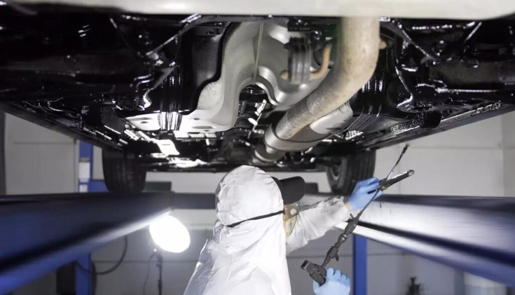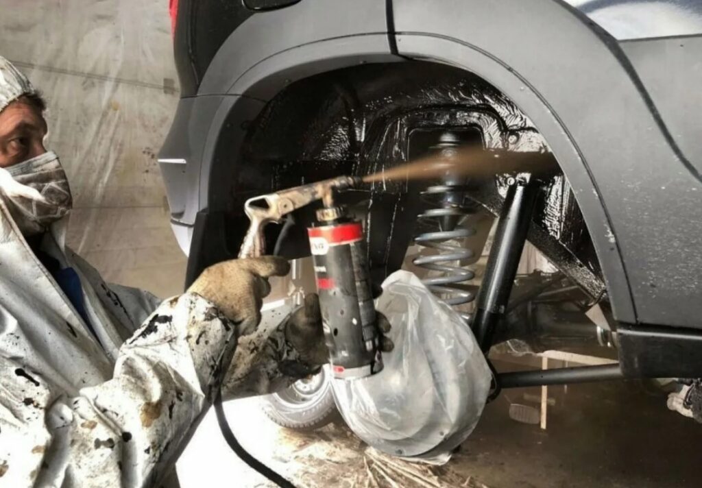 - Дополнительный «доспех». После всех процедур можно усилить защиту. Например, на нижнюю часть кузова нанести антигравийное покрытие. Оно станет дополнительным щитом от мелких камней и гравия, которые постоянно летят из-под колес.