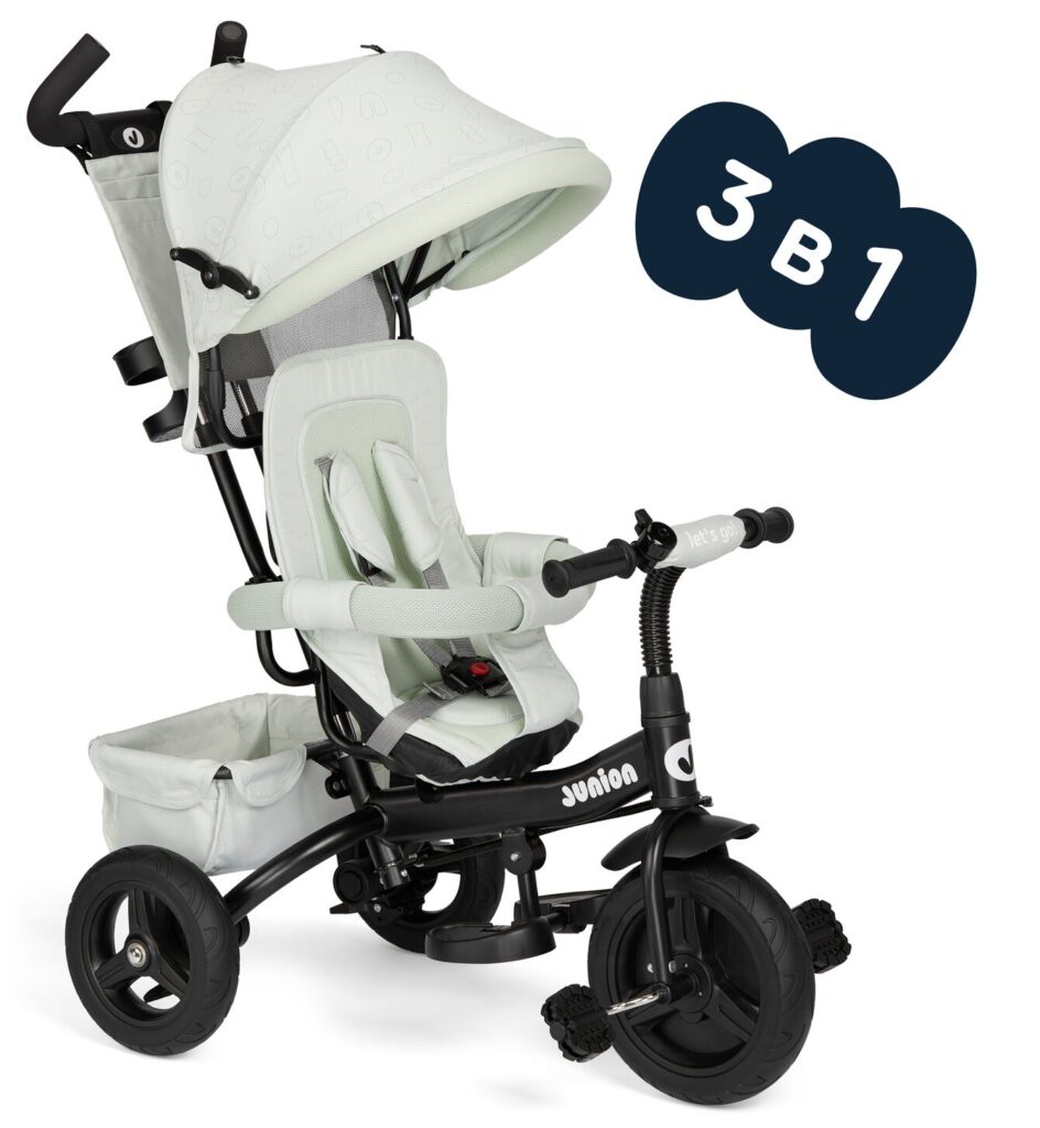 Очень легкая и маневренная конструкция от фирмы Junion Elefy предназначена для малышей от 12 месяцев. Может трансформироваться в самостоятельное средство передвижения для ребенка, но на первых порах полностью управляется родителем с помощью ручки. Козырек регулируется в 3-х положениях. Эргономичное сидение позволит ребенку наслаждаться поездкой долгое время без усталости и неприятных ощущений. В случае, если ножки малыша устанут, он спокойно может поместить их на подставку. Особый комфорт обеспечивается благодаря наличию сумочки для мелочей и подстаканникам для кофе. Пятиточечные ремни безопасности не давят на ребенка благодаря мягким вставкам. Управление транспортным средством можно смело доверить ребенку, поскольку этот навык очень полезен и помогает ему тренировать равновесие, различные группы мышц и способствует развитию головного мозга. Вы можете не беспокоиться за безопасность, поскольку конструкция продумана полностью, включая наличия нескользящих ручек для надежного хвата (даже несмотря на мокрые ладошки). Модель выпускается в универсальных цветах.