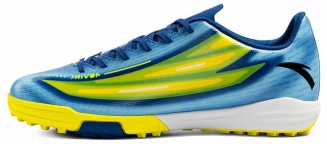 Многошиповки подходят для игры на искусственном покрытии или грунте. В данной модели успешно сочетаются передовые инженерные решения, совмещенные с ярким и привлекательным дизайном. Верх изделия выполнен из искусственной кожи, стелька съемная и изготовлена из вспененного материала ЭВА. Она уменьшает нагрузку на опорно-двигательный аппарат и обеспечивает амортизацию во время бега и ударов. Подошва имеет резиновые шипы, дающие отличное сцепление. Обувь легко моется и не требует особого ухода. Размерный ряд: от 38 до 42. Средняя стоимость: 2400 рублей.