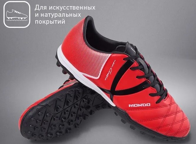 Модель Mondo относится к новому поколению многошиповок. Идеальна для тренировок как на грунте, так и на искусственных покрытиях. Создана для того, чтобы вы почувствовали максимальную надежность и комфорт. За счет анатомической колодки, нога не устает, и нагрузка распределяется равномерно. Стелька выполнена из материала ЭВА, который обеспечивает дополнительный комфорт. Оптимальное сцепление обеспечивают резиновые шипы. Качественные материалы, которые легко моются и не требуют особого ухода. Размерный ряд от 34 до 46. Средняя стоимость: 1600 рублей.