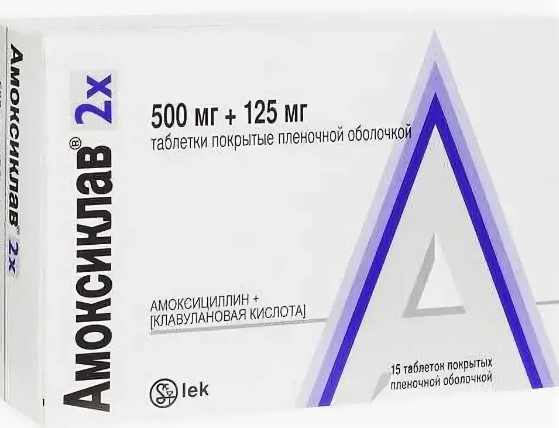 Амоксиклав таб. п/о плен., 500 мг+125 мг, 15 шт
